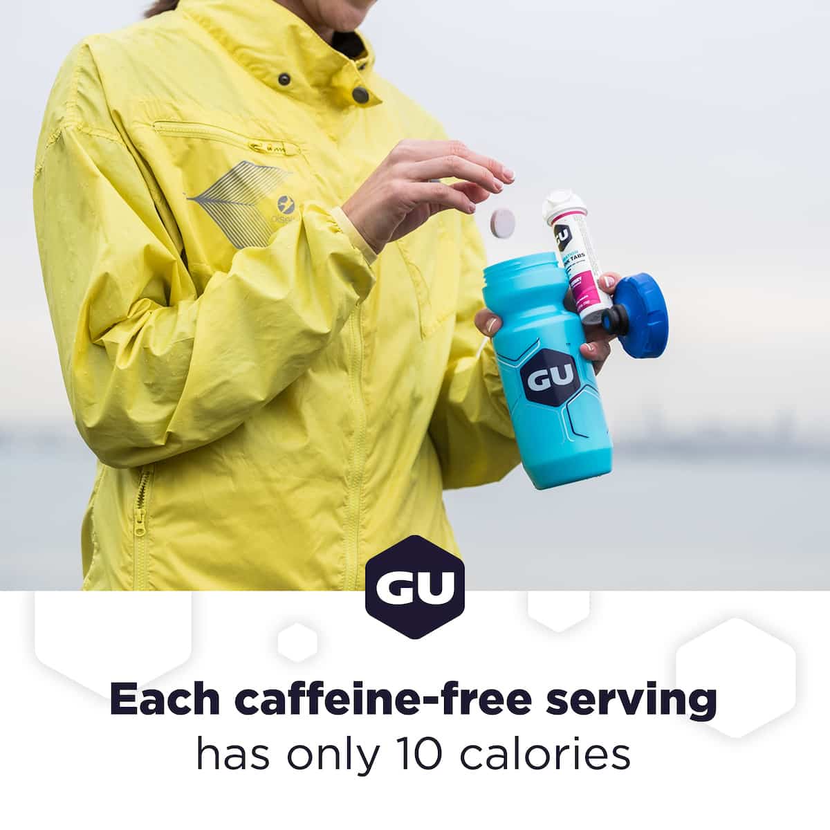 GU poretabletti liukenee helposti veteen ja saat nopeasti juomaa, joka maistuu vaikka siinä on vain 10 kcal energiaa, koska makeutta antaa luonnollinen Stevia.